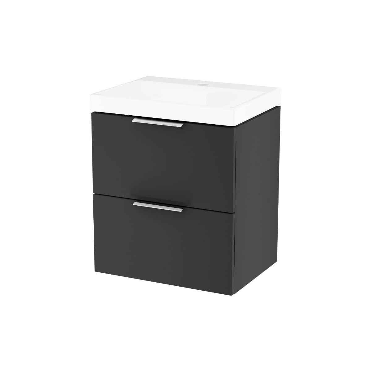 La nuova serie di mobili Blanko è l'opzione ideale per chi vuole attrezzare un bagno piccolo con mobili funzionali e compatti. Il mobile lavabo 49 cm nero opaco. La profondità di soli 37 cm lo rende adatto anche al bagno più piccolo e l'utilizzo, grazie al lavabo dalla forma particolare, è comunque confortevole. I frontali del mobile sono laccati con tecnologie di altissima qualità e garantiscono la protezione del mobile in un ambiente impegnativo come il bagno. I colori proposti sono ormai molto utilizzati nel design del bagno, in quanto si combinano bene con gli altri colori della stanza. Il mobile è dotato di guide Hettich (estensione ¾) con chiusura silenziosa e il cassetto superiore ha un organizer in legno incorporato. Completo di 2 maniglie in alluminio cromato.