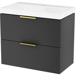 La nuova serie di mobili Blanko è l'opzione ideale per chi vuole attrezzare un bagno piccolo con mobili funzionali e compatti. Il mobile lavabo nero opaco da 64 cm. La profondità di soli 37 cm lo rende adatto anche al bagno più piccolo e l'utilizzo, grazie alla forma speciale del lavabo, è comunque confortevole. I frontali del mobile sono laccati con tecnologie di altissima qualità e garantiscono la protezione del mobile in un ambiente impegnativo come il bagno. I colori proposti sono ormai molto utilizzati nel design del bagno, in quanto si combinano bene con gli altri colori della stanza. Il mobile è dotato di guide Hettich (estensione ¾) con chiusura silenziosa e il cassetto superiore è dotato di un organizer in legno incorporato. Completo di 2 maniglie in alluminio con finitura dorata.