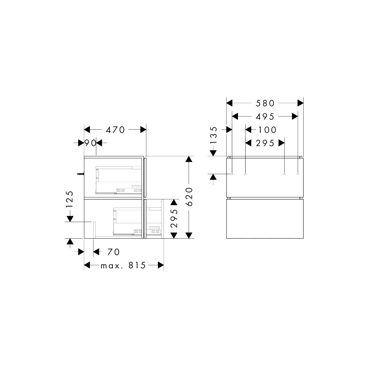 Xilesa E di Hansgrohe unisce design e funzionalità per offrire un'esperienza confortevole e di grande effetto. I cassetti si aprono facilmente grazie alla funzione Push-Open. Non è necessario utilizzare maniglie serrate. Il mobile lavabo offre il massimo spazio di archiviazione - grazie al sifone salvaspazio (venduto separatamente: 54235000), non è necessario un taglio per il sifone.