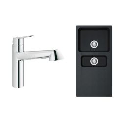 Il miscelatore Eurodisc Cosmopolitan offre un controllo sempre fluido e preciso della pressione e della temperatura dell'acqua. Viene fornito con il lavello Orion onyx da 1,5 vasche.