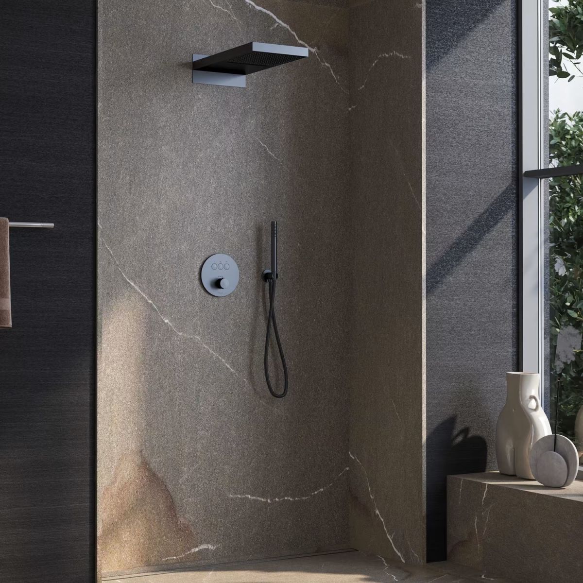 Kronenbach Smart Push miscelatore termostatico da incasso per vasca e doccia, nero opaco 19044003SM