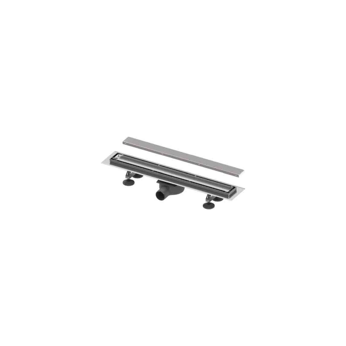 - in dotazione: vasca in acciaio inox lucidato, materiale 1.4301 (304) compresa flangia di tenuta, raccordo centrale per lo scarico, gomito di uscita DN 50 con bocca esterna orizzontale, ruotabile a 360°.altezza del sifone 25 mm, portata di 0,8 litri/secondo (secondo EN 1253), collare di tenuta per un'impermeabilizzazione permanente e sicura in connessione con l'isolamento del pavimento, piedini di montaggio per la regolazione dell'altezza e il posizionamento della grondaia, regolazione dell'altezza fino a 125 mm (dal bordo inferiore dei piedini di montaggio al bordo superiore della grondaia), griglia decorativa rimovibile "2 in 1" nella grondaia