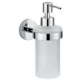 Il montaggio a parete è semplice e non invasivo, senza bisogno di forare. Il cromo e il vetro satinato si completano perfettamente. Il contenitore in vetro ha una capacità di 200 ml ed è facile da riempire. Il dispenser si fissa con una soluzione autoadesiva che non richiede l'uso di trapani o altri utensili. L'adattatore e la massa adesiva sostituiscono il trapano e i tasselli. Le superfici rimangono intatte. Il dispenser può anche essere facilmente smontato e rimontato in un altro punto utilizzando il nuovo adattatore BK20. Dimensioni: 170 x 70 x 126 [mm]