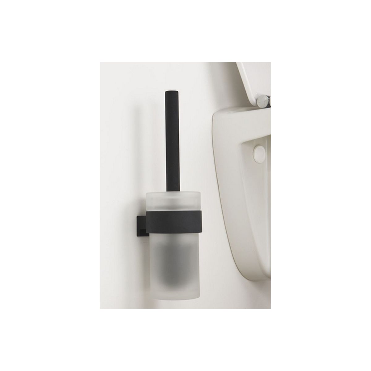 Uno scopino per il bagno in un contenitore estetico di vetro smerigliato. La qualità del prodotto è stata curata dal marchio Tiger, specializzato nella produzione di accessori per il bagno. L'insieme è progettato per il montaggio a parete. Il prodotto dimostra che anche uno scopino può avere qualità decorative. Per garantire un carattere coerente del bagno, vi invitiamo a dotarlo di altri accessori della serie Bold.
