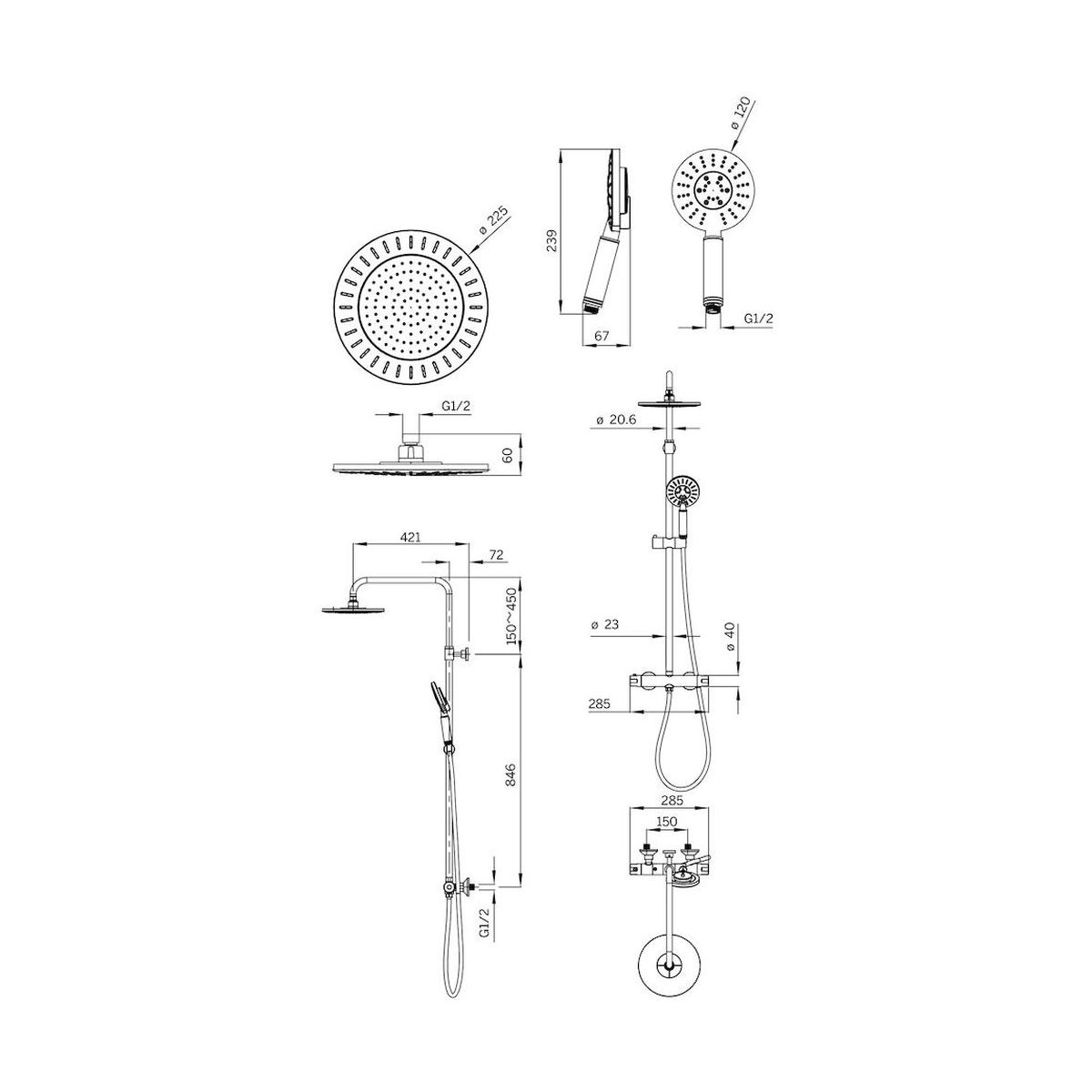 - soffione regolabile in altezza con diametro di 22,5 cm