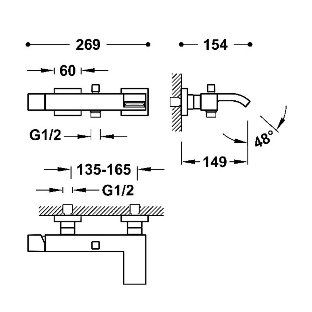 - lunghezza del miscelatore: 254 mm