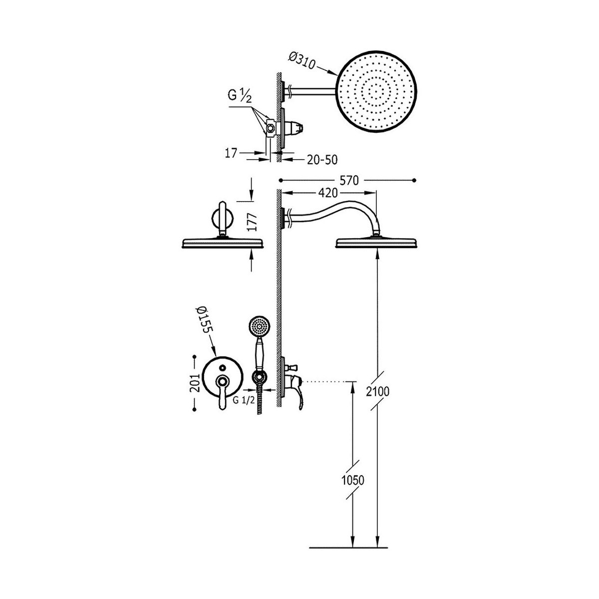Tres Monoclasic set doccia da incasso con soffione || 242.180.03.AC
