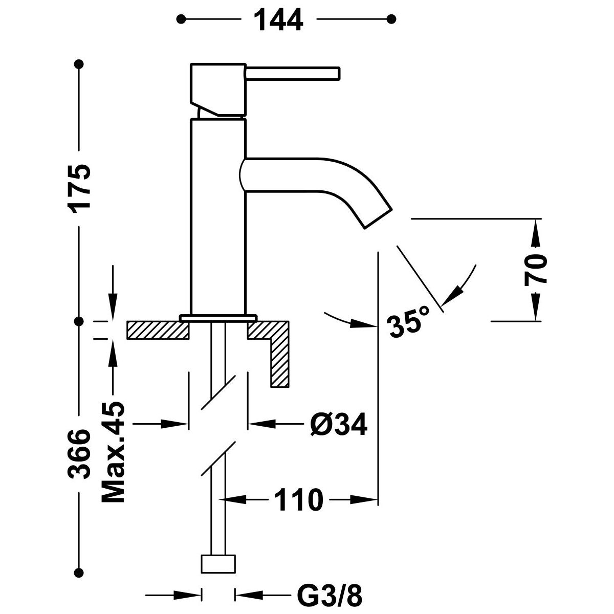 - altezza rubinetto: 17,5 cm