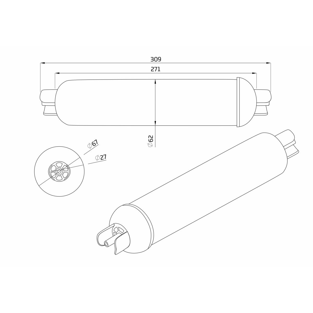 - Accessori per l'installazione: gomiti di collegamento (2 pezzi), maniglie (2 pezzi), tubo flessibile (2 mb), viti (2 pezzi)