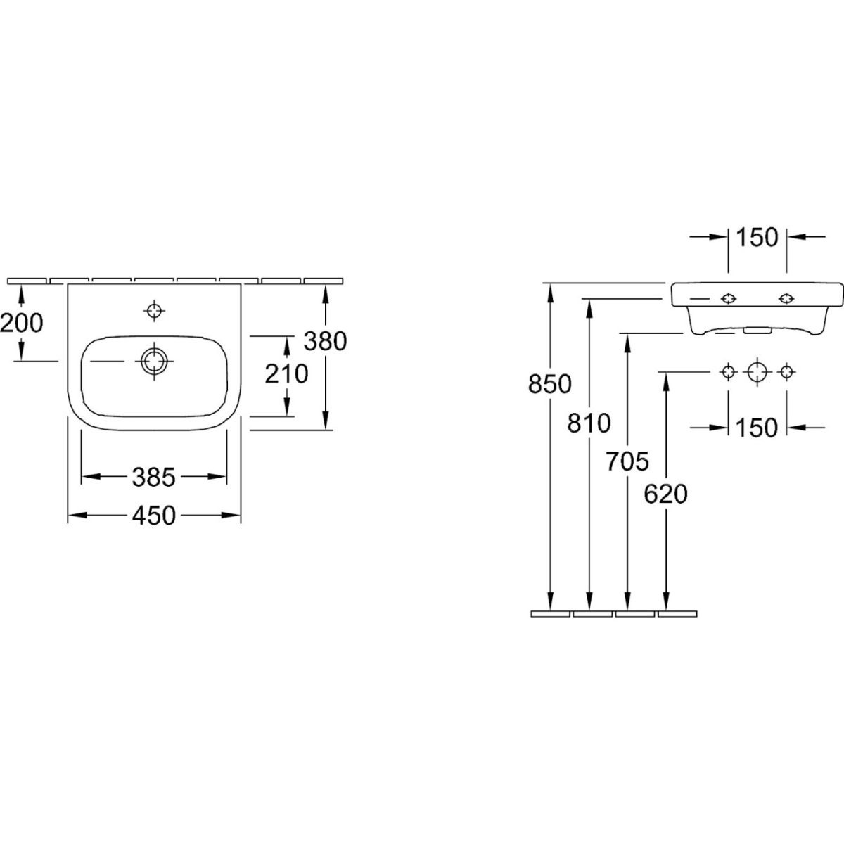 Villeroy & Boch Architectura lavabo 45x38 cm semicircolare a parete bianco 43734501