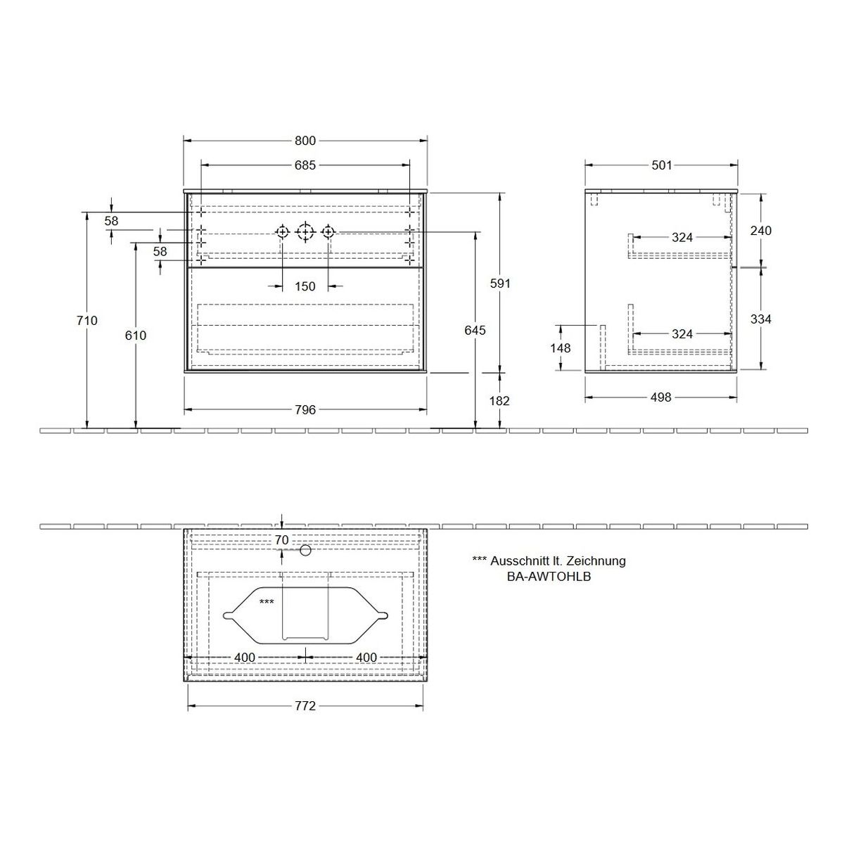 Villeroy & Boch Finion armadietto 80x50.1x60.3 cm sottolavabo sospeso nero-noce F22200GN