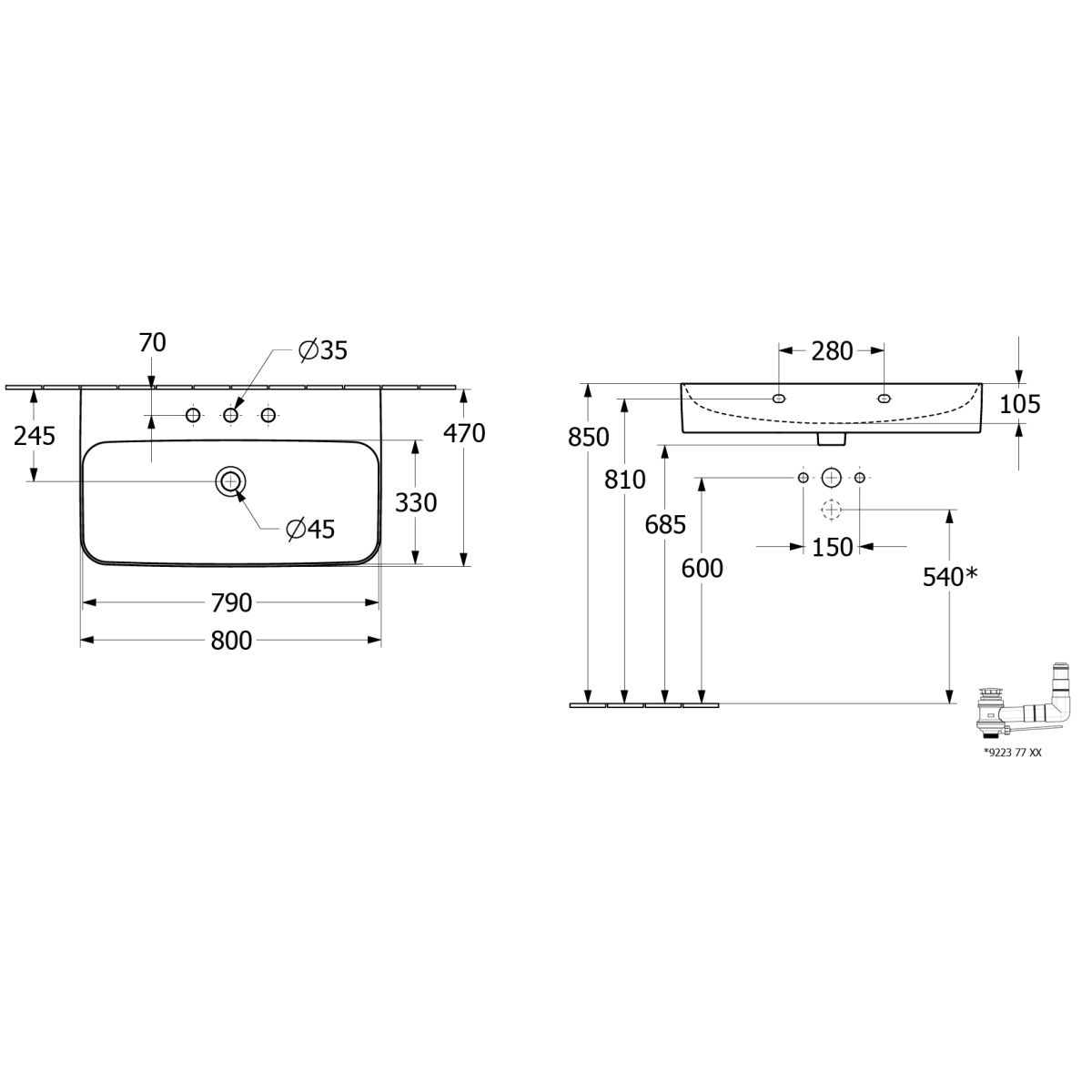 Villeroy & Boch Finion lavabo 80x47 cm rettangolare a parete bianco 416884RW