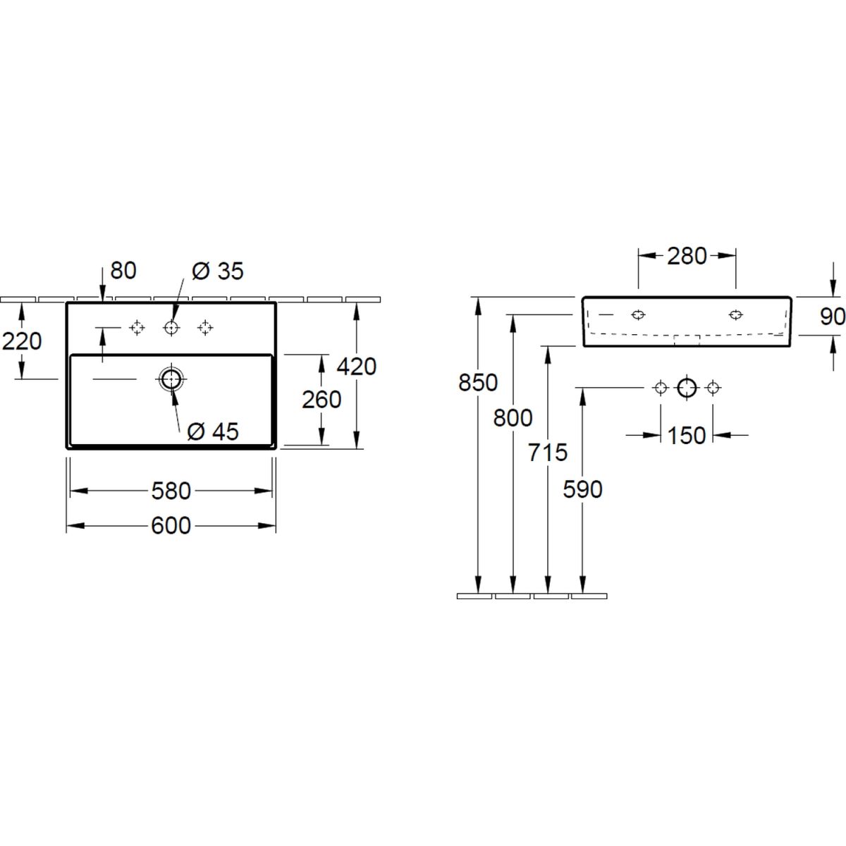 - dimensioni del lavabo: 58 x 26 cm