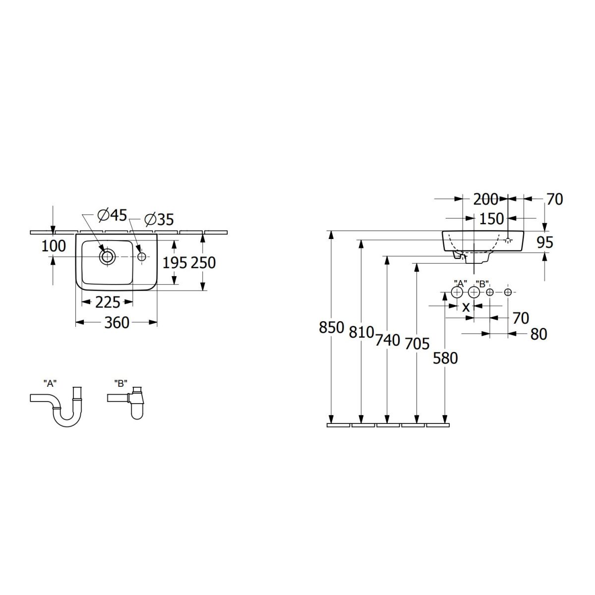Villeroy & Boch O.Novo lavabo 36x25 cm rettangolare a parete bianco 43433601