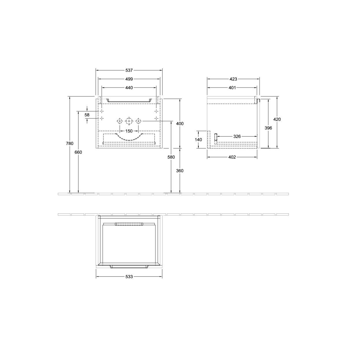 Villeroy & Boch Subway 2.0 armadietto 53.7x42.3x42 cm sottolavabo sospeso grigio A68610VM