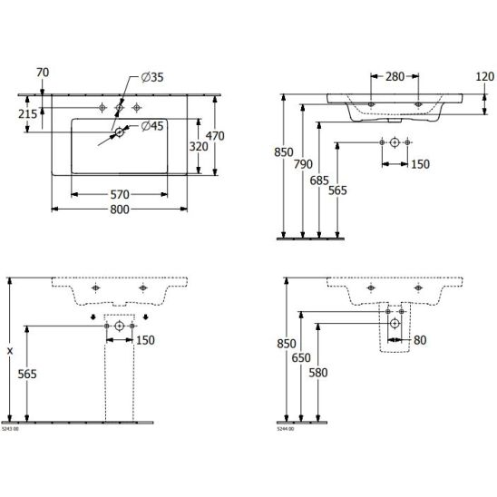 Villeroy & Boch Subway 3.0 lavabo 80x47 cm rettangolare a parete-da mobile bianco 4A7080R1