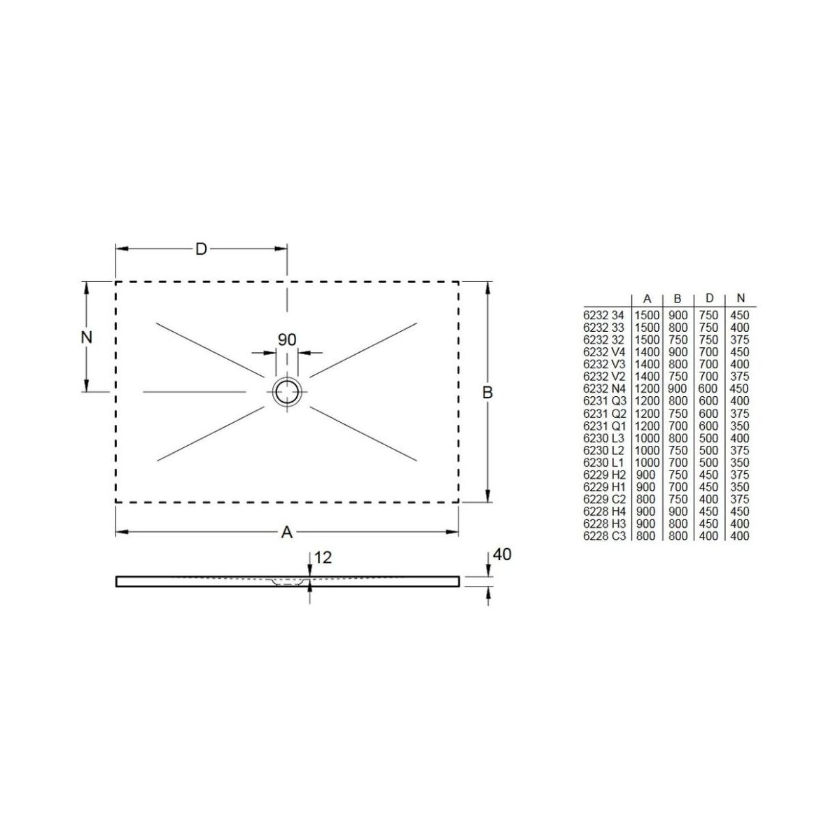 - piatto doccia tagliato su 4 lati (non smaltato)