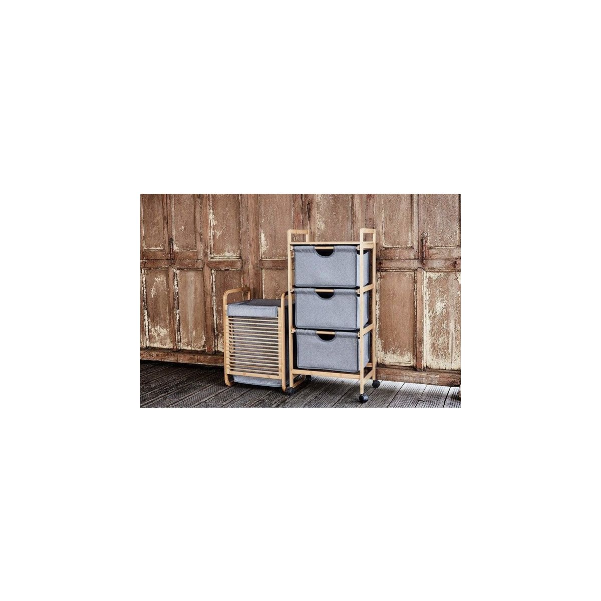 La libreria da bagno è dotata di tre cassetti a forma di cestini, realizzati con una miscela di cotone e fibra sintetica.