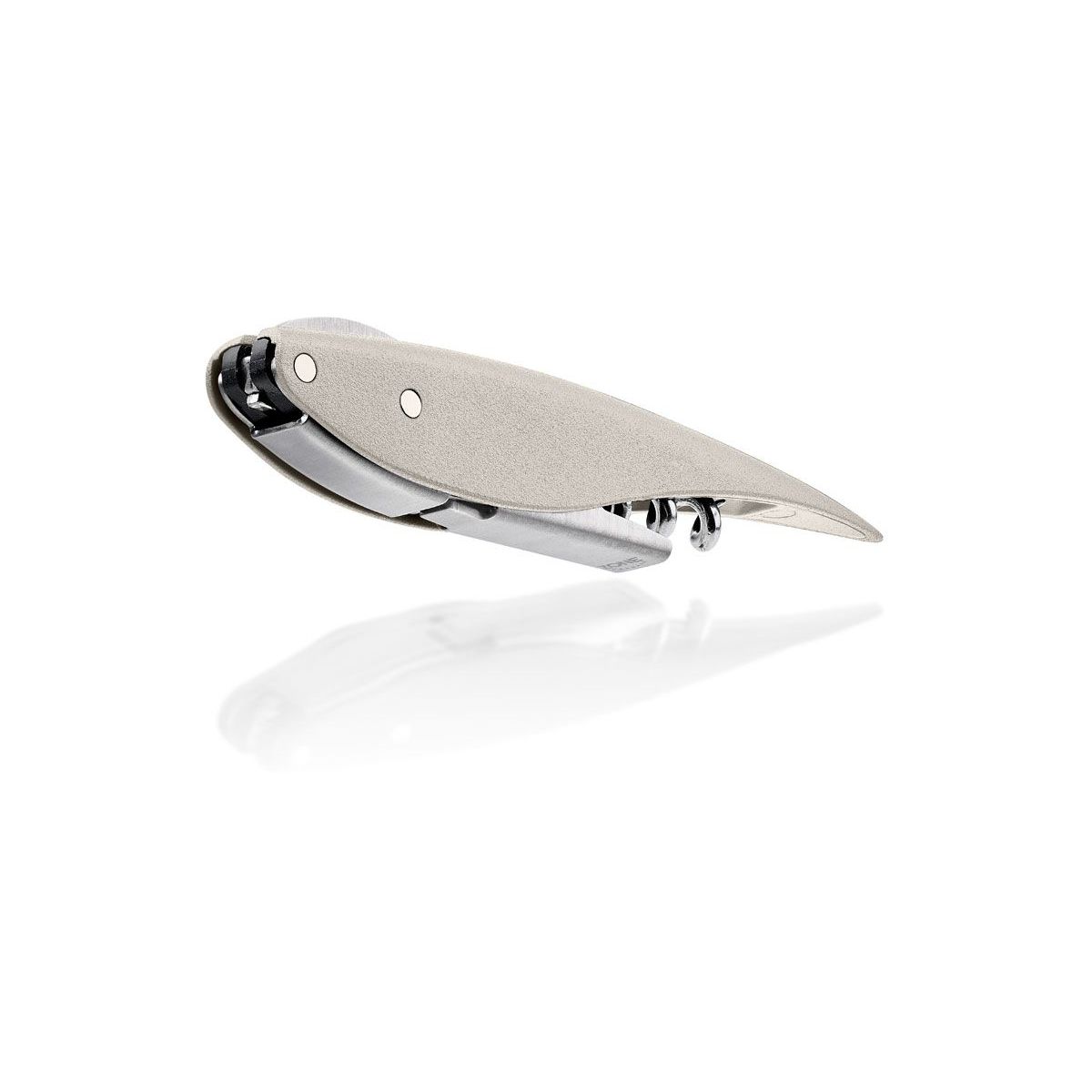- è dotato di un taglia-capsula e di un apri-pellicola integrati, mentre il braccio pieghevole facilita l'apertura della bottiglia in due passaggi senza bisogno di esercitare una forza eccessiva